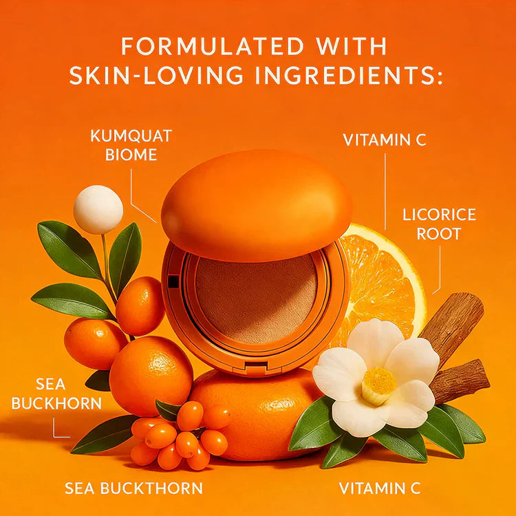 Sea Buckthorn Extract hydrates, firms, and restores radiance with a rich blend of vitamins and antioxidants.Kumquat Biome.