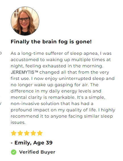 Ensures Consistent Airflow: By keeping the airway unobstructed, JEREMYTIS™ enhances oxygen supply to the brain and body, crucial for restorative sleep and optimal cognitive function the next day, reducing grogginess and brain fog.