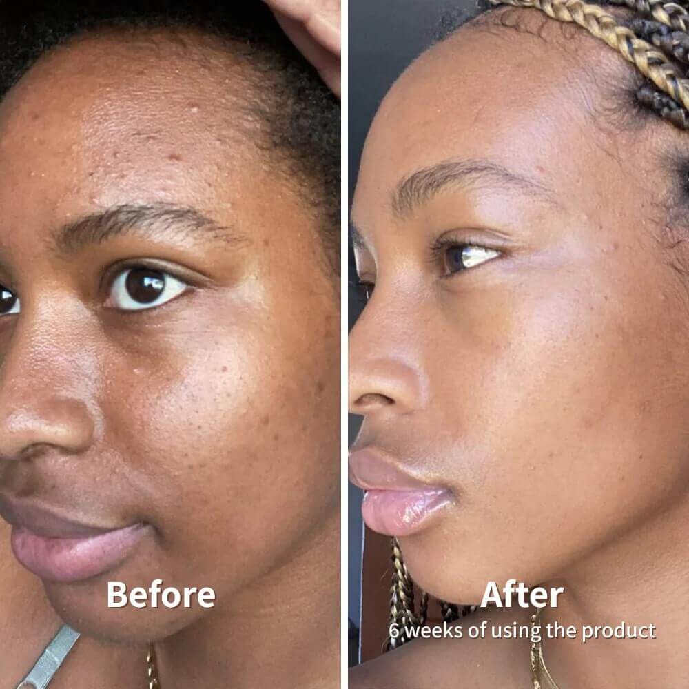 You'll notice instant softness and brightness after one use, but for texture improvement (fine lines, pores), you'l noticechanges within 2-4 weeks of regular use.